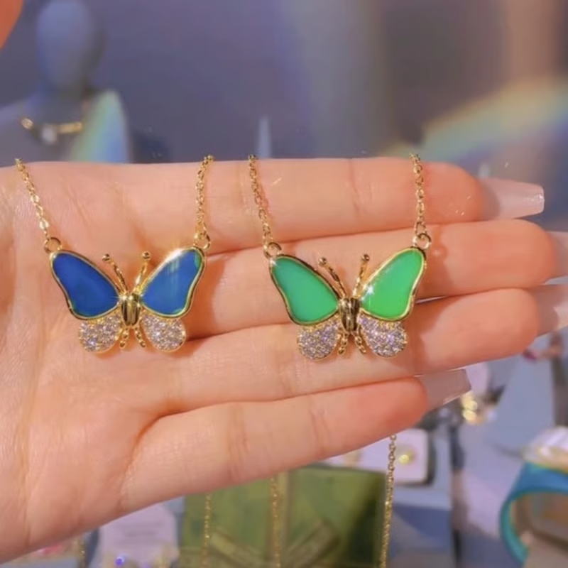 • Mesmerizing temperature-sensitive color-changing gold titanium steel butterfly pendant 🦋