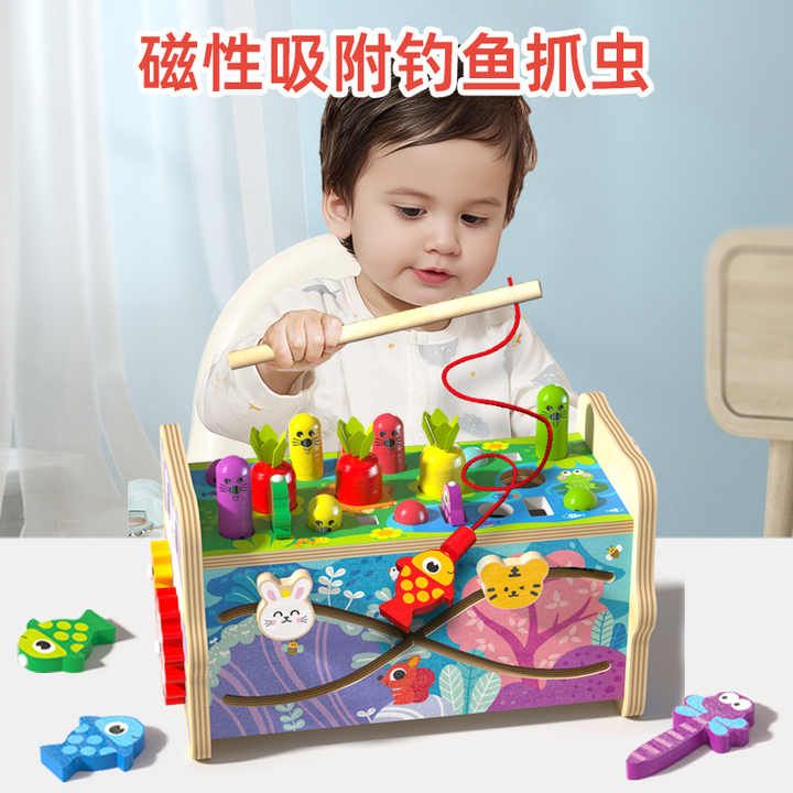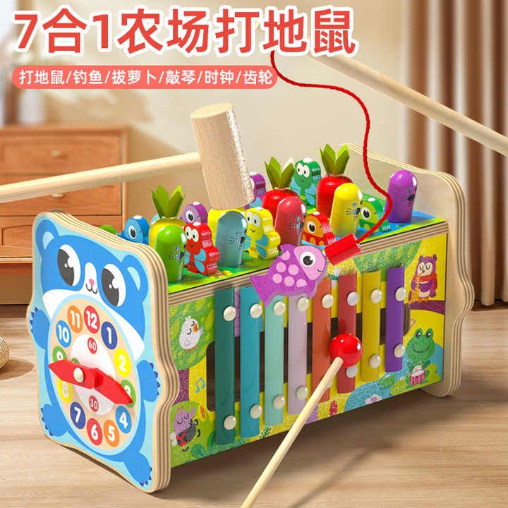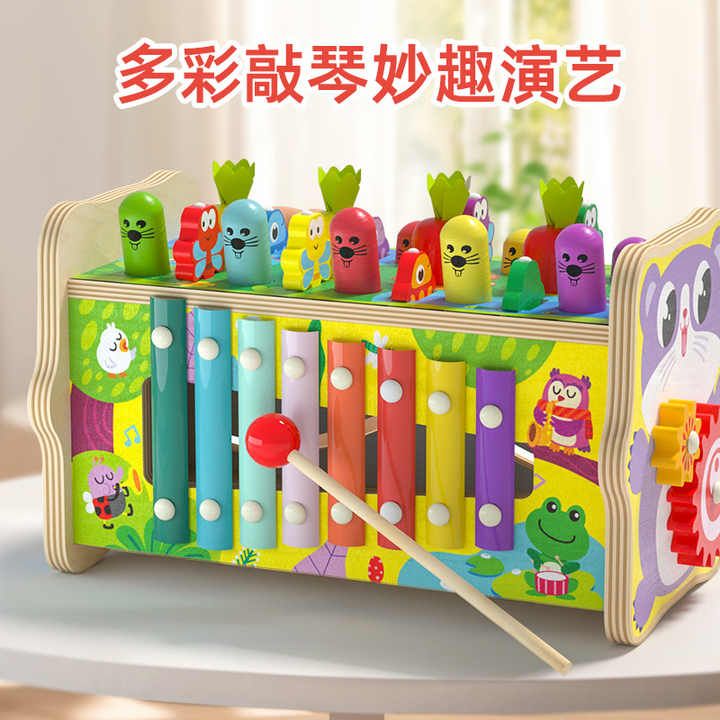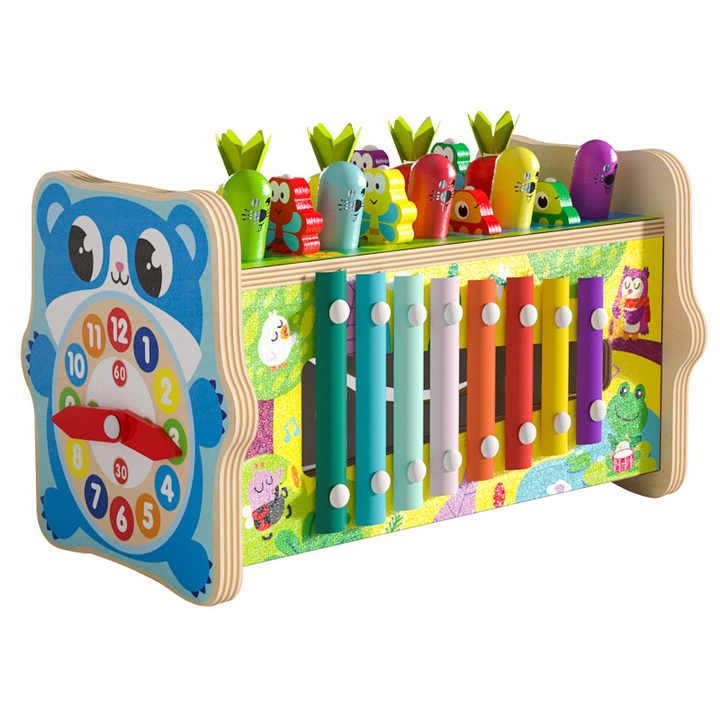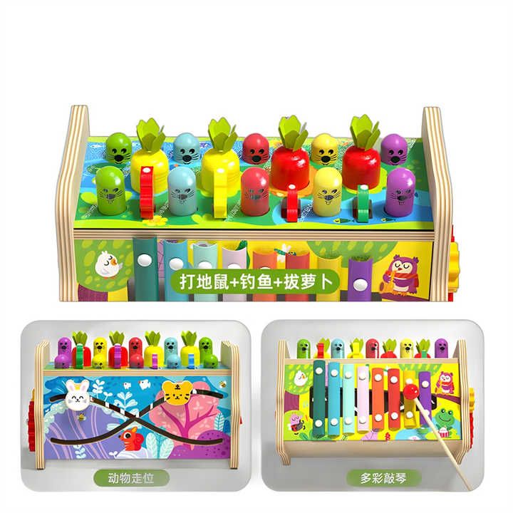 Wooden Hammering Toy Eight in One Fishing Carrot Knocking Box Toy Music Teaching Aids Pulling Carrots Toy