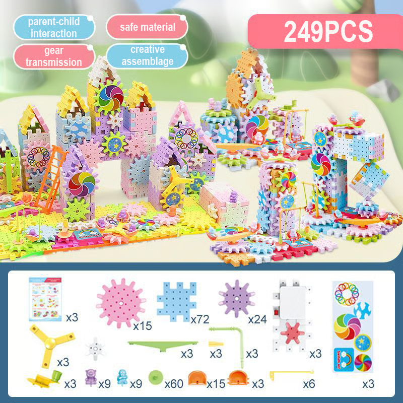 - Gear building blocks 249PCS: 249 components, 3 motor