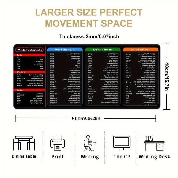 Invest in a high-quality Large Size Mouse PadWord/Excel/Power Point Shortcut Keys Desk Pad MatNon Slip today!