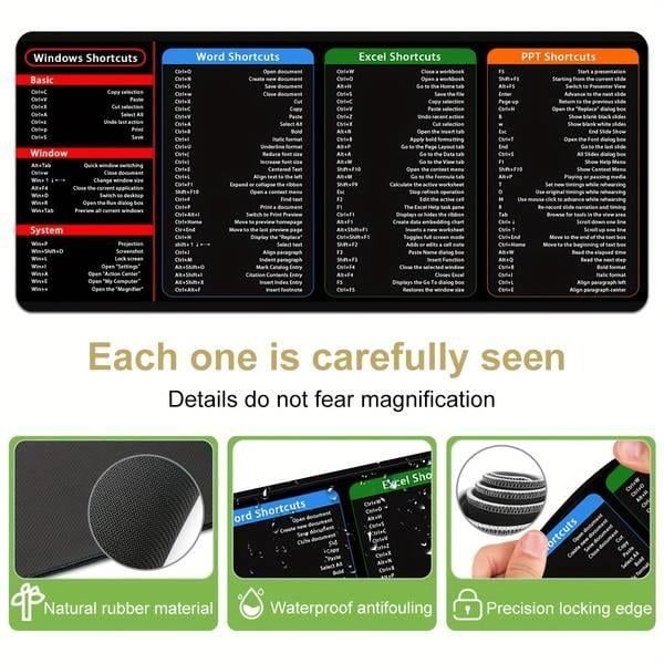 💖Large Size Mouse Pad With Creative Office Shortcuts For Word&Excel&PowerPoint