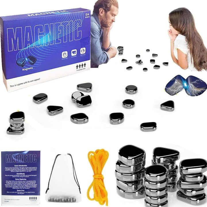 Magnet Chess Game with Tray,Strategy Battle Magnetic Chess Game for Children Adults Family Party Fun Puzzle with 20 Stone Rope